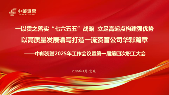 1月24日,中邮资管在京召开2025年工作会议暨第一届第四次职工大会。会议以习近平新时代中国特色社会主义思想为指导,深入贯彻落实党的二十大和二十届二中、三中全会以及中央金融工作会议、中央经济工作会议精神,传达落实邮政集团、中邮保险2025年工作会议部署,总结去年工作,研判内外部形势,安排今年重点工作。中邮保险党委书记、董事长,中邮资管党委书记、董事长韩广岳作讲话,中邮资管临时负责人、副总经理张戬作工作报告。